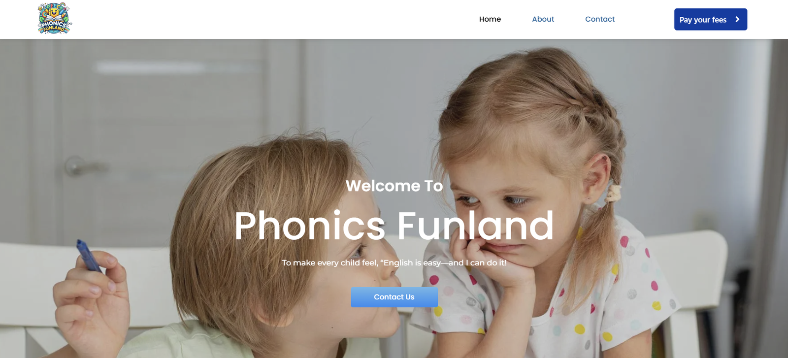 We designed a vibrant, responsive website for Phonics Funland, showcasing their activity-based Jolly Phonics and International curriculum. The site engages parents, highlights programs, and reflects their playful, educational approach.